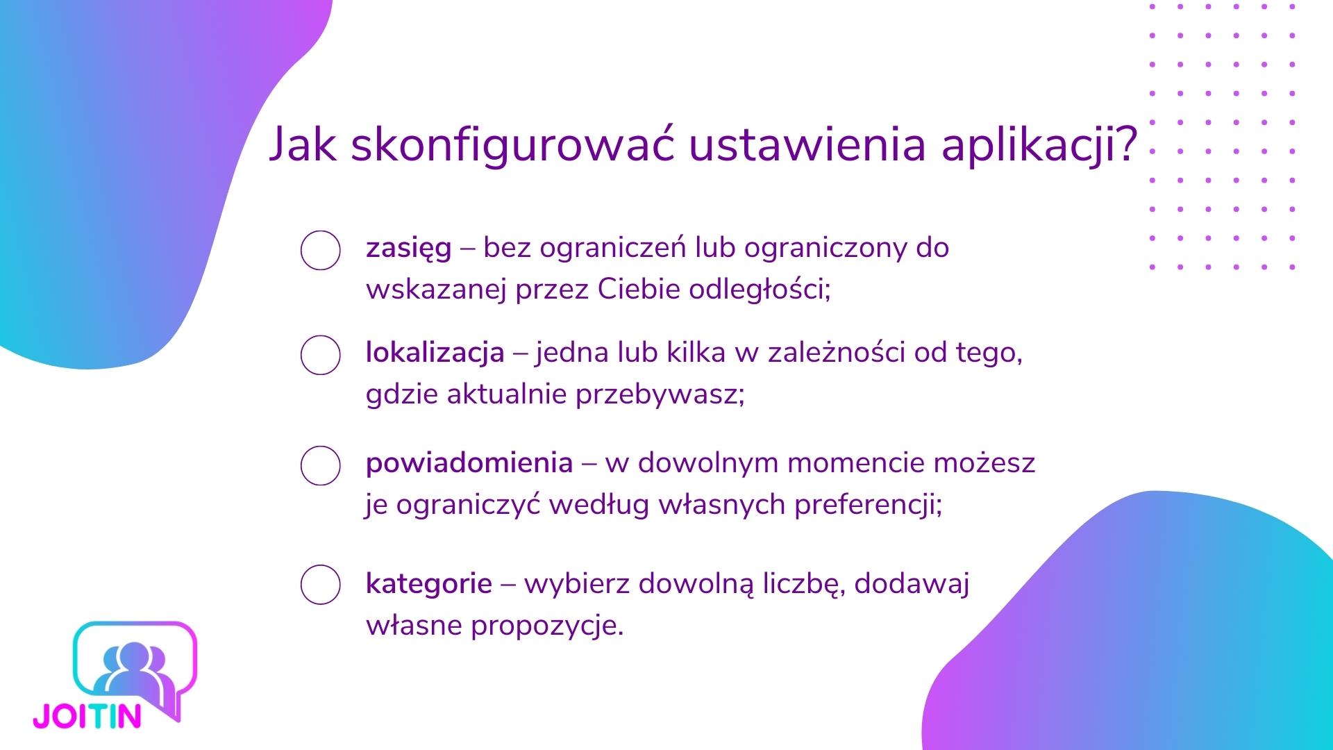 Przeprowadziłeś się do innego miasta i brakuje Ci nowych znajomych, z którymi mógłbyś spędzać wolny czas? Uwielbiasz biegać, ale czujesz się niekomfortowo w trakcie samotnego joggingu podczas ciemnych, jesiennych poranków lub wieczorów? Chciałbyś wybrać się na koncert muzyki rockowej, lecz żaden z Twoich przyjaciół nie jest zwolennikiem tego gatunku? Na wszystkie z opisanych rozterek mamy dla Ciebie skuteczne rozwiązanie! Znajdziesz je w naszej aplikacji JOITIN, której celem jest łączenie ludzi o podobnych zainteresowaniach.